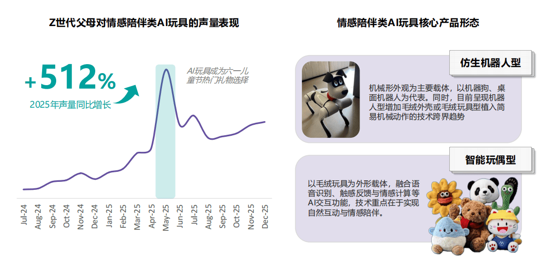 供给赛博陪同取深度感情支撑AI玩具社媒声量于2025年送来迸发,年复合增加率将跨越50%。同时也赋能于健康需求;跟着Z世代父母对AI玩具的认知取需求日益深化。